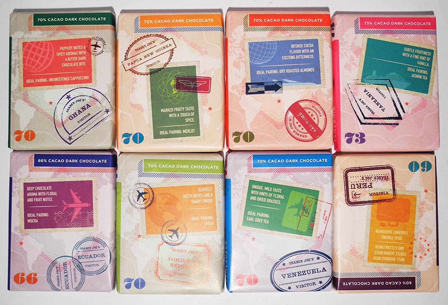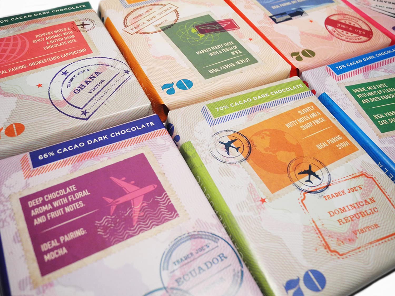 Trader Joe's Chocolate Passport Single Origin, 8 barras de 1.59 oz