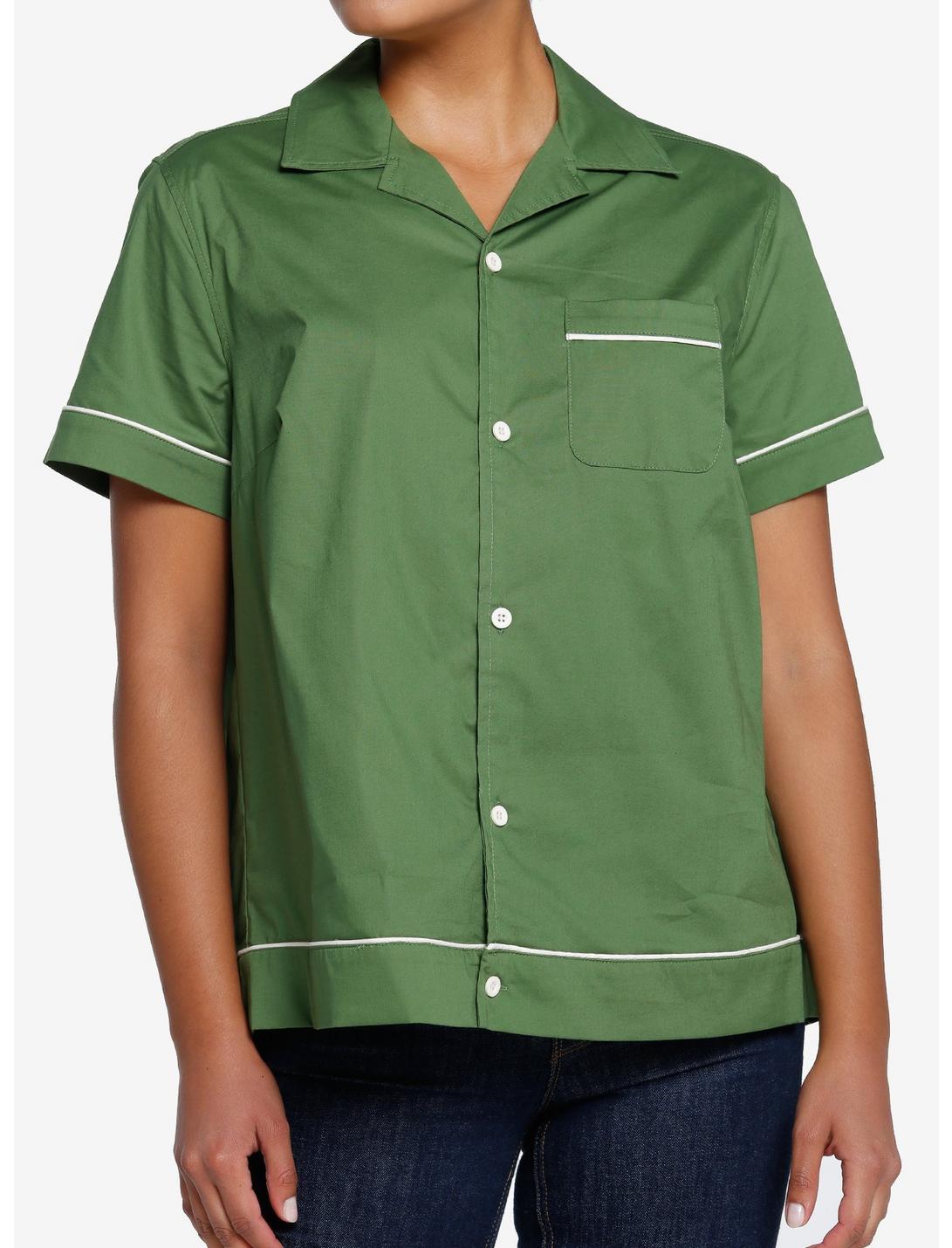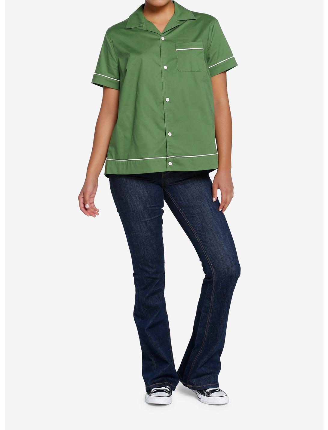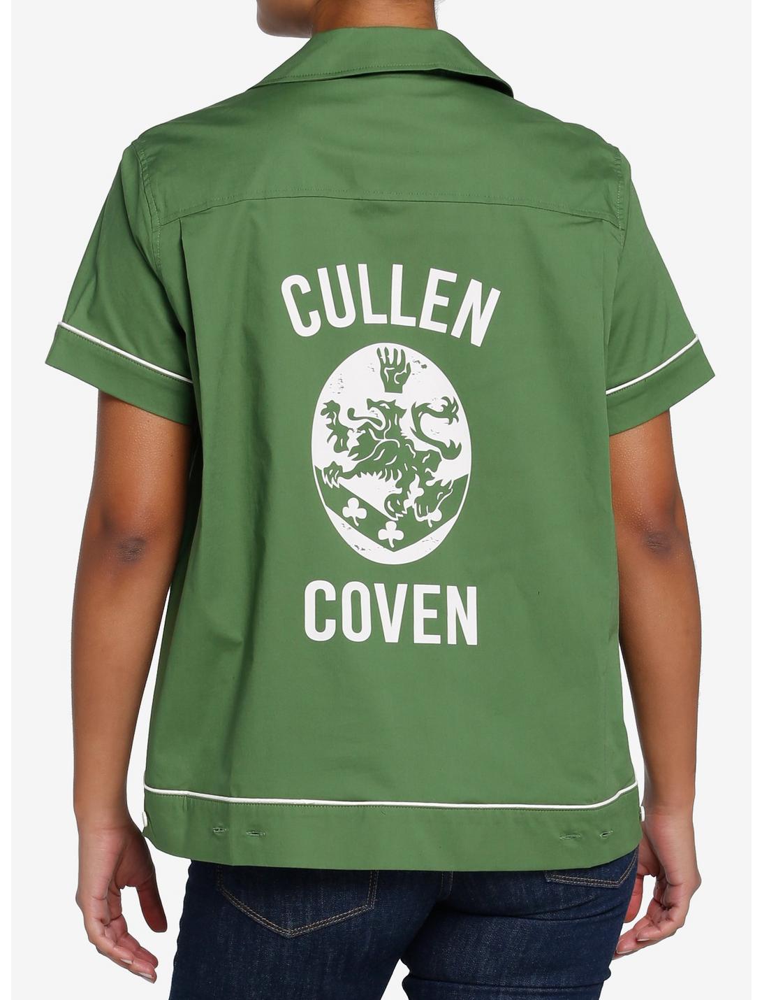 ¡Dirígete a Forks High School en tu camioneta roja y esta camisa verde tejida con botones! Canaliza tu Bella Swan interior con este top de Crepúsculo, inspirado en lo que Bella usó en su primer día de clases. "Cullen Coven" está impreso en la parte posterior con el escudo de Cullen.