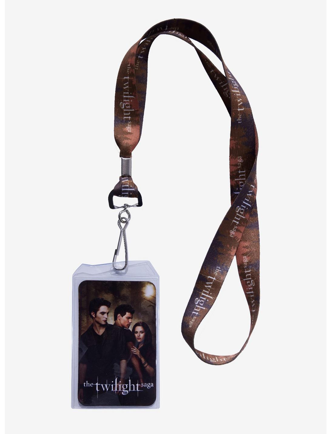 Ya sea que se dirija a La Push o al bosque para un juego de béisbol de vampiros, ¡querrá mantener sus elementos esenciales asegurados en este cordón! De la saga Crepúsculo, este cordón tiene el logo de la serie de películas en un estampado repetido con un fondo de bosque sepia, además de un tarjetero con Edward, Jacob y Bella.