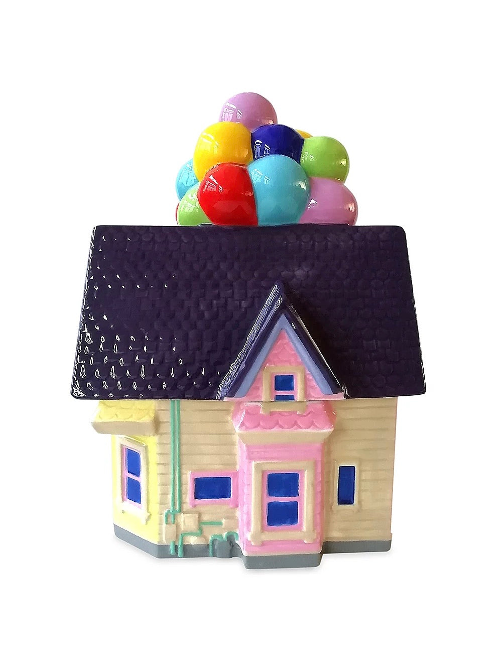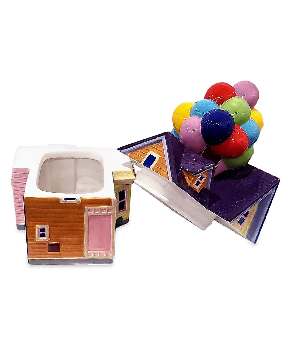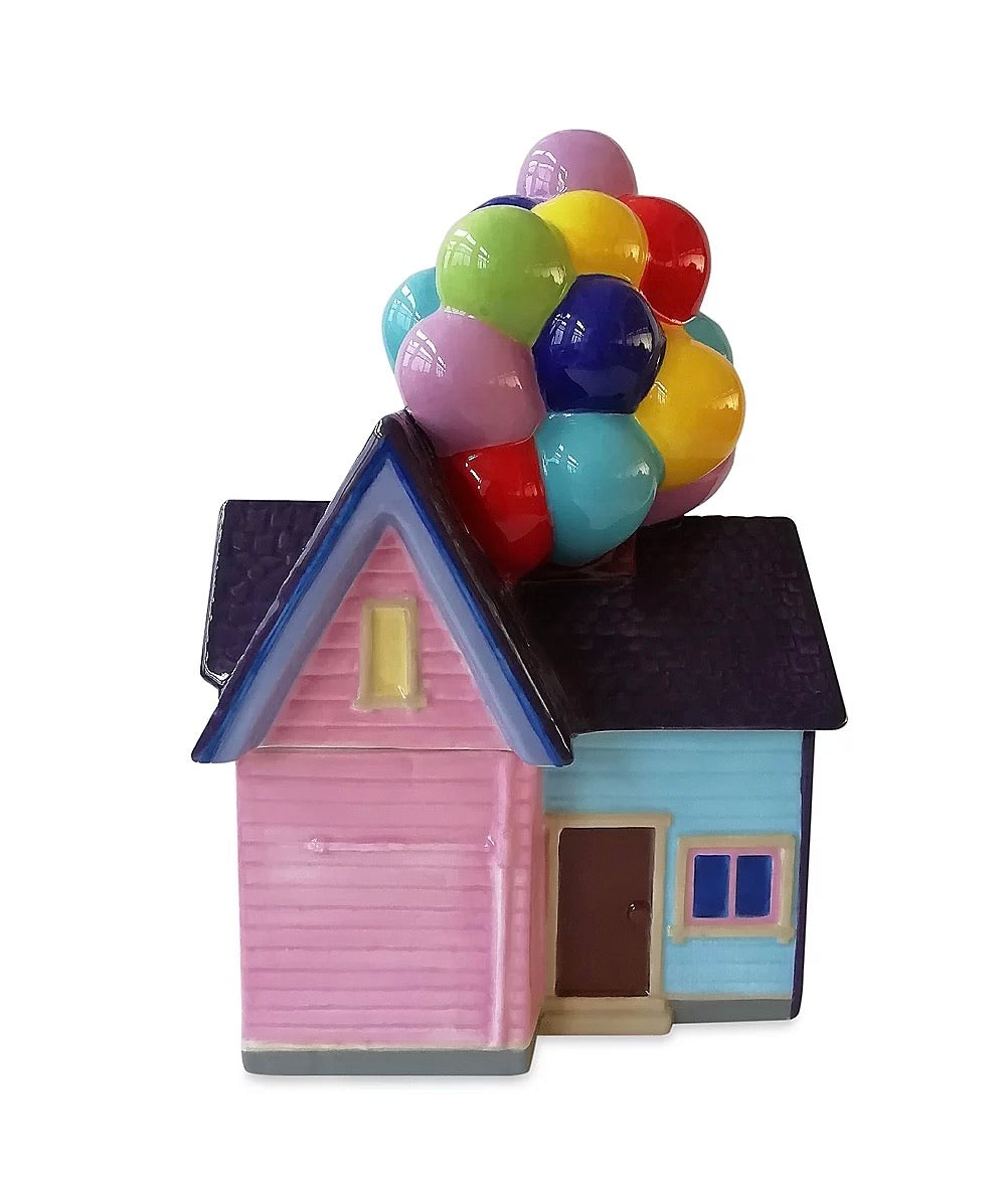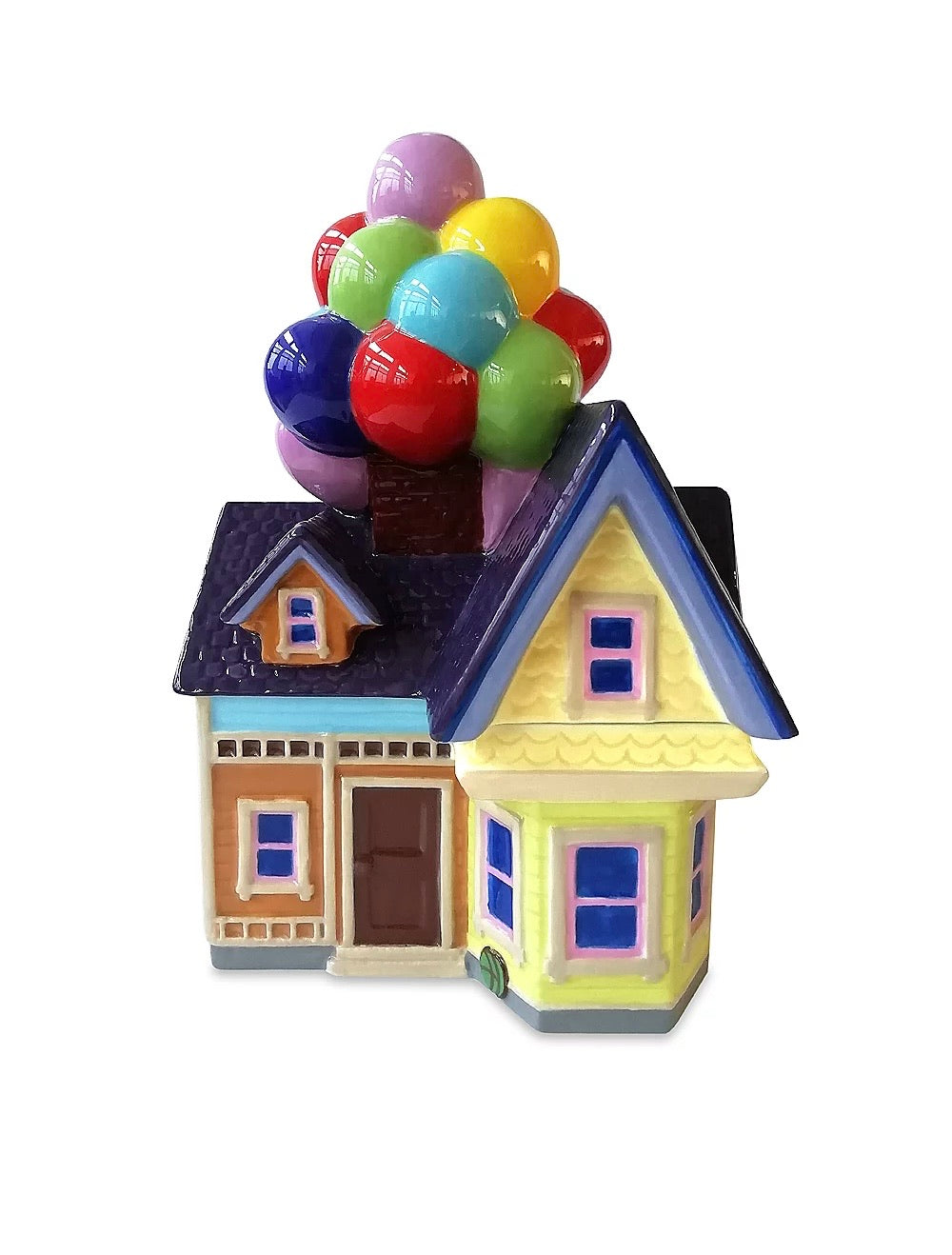 Tarro de galletas de cerámica con tapa Figura de la casa de Carl Fredricksen con globos El segundo piso completo es la tapa y los globos se pueden usar como asa.