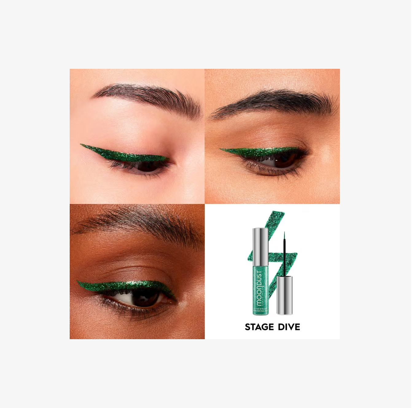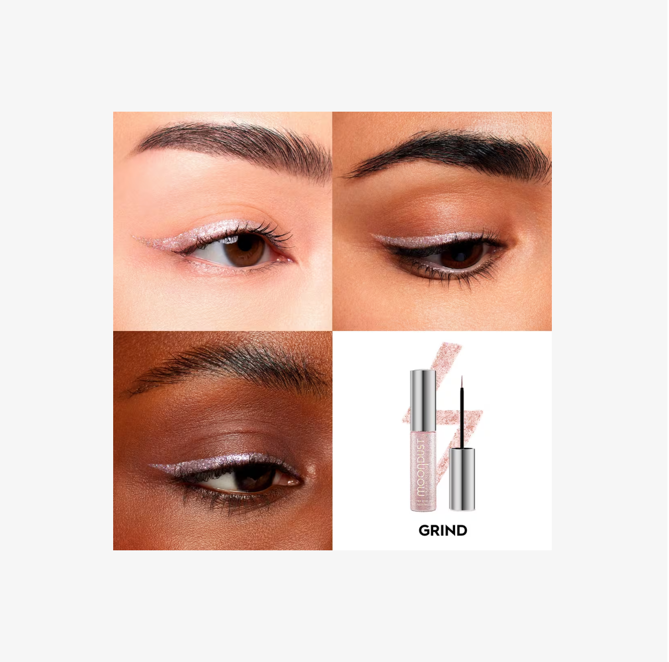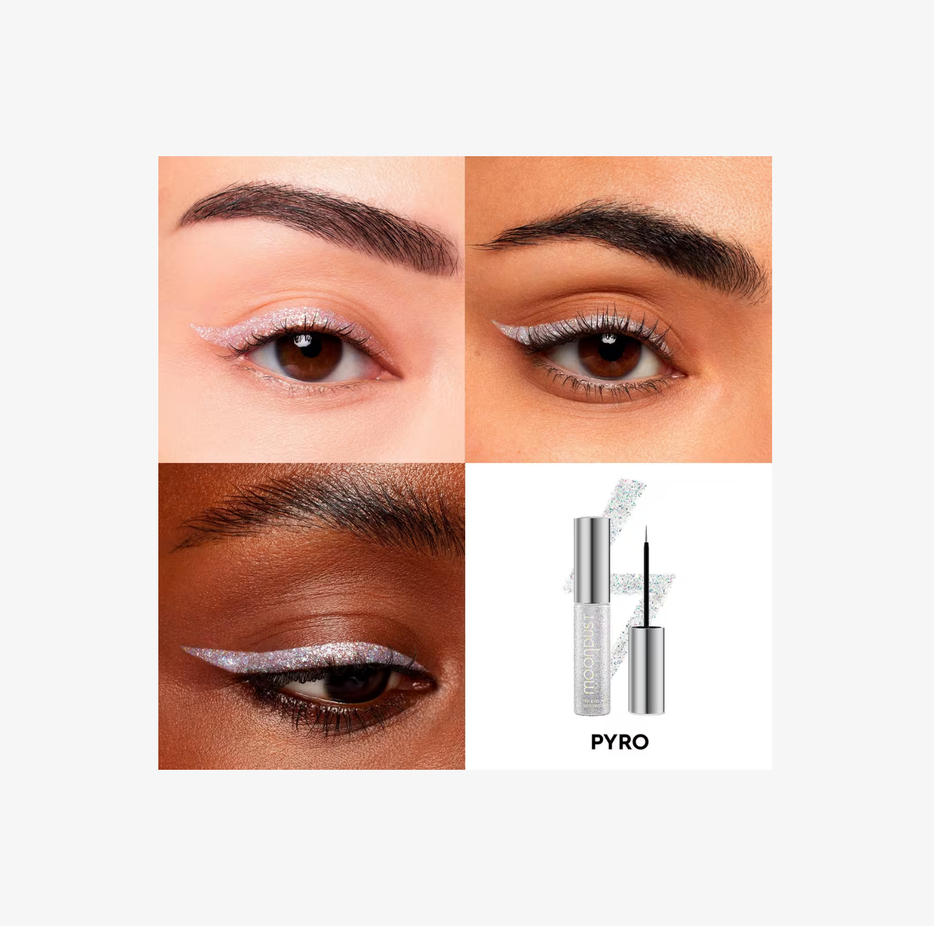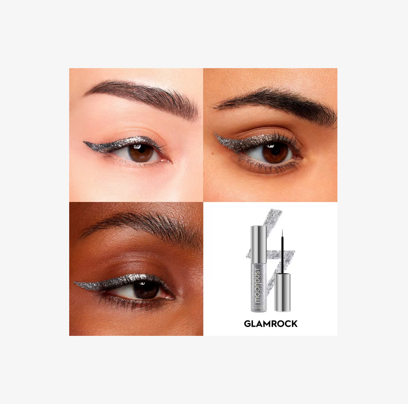 Delineador glitter: el pincel fino permite trazar líneas precisas. Úsalo solo o sobre 24/7 Glide-On Waterproof Eye Pencil o 24/7 Inks Liquid Eyeliner para mayor duración.