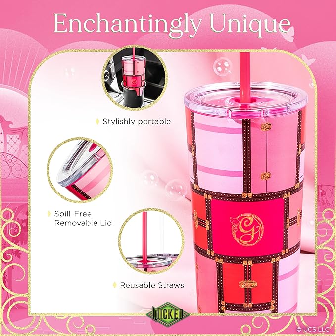 - Mercancía oficial de Wicked: muestra tu fandom con este vaso Wicked inspirado en Glinda, con su diseño de equipaje que captura el espíritu de la querida película musical para verdaderos entusiastas