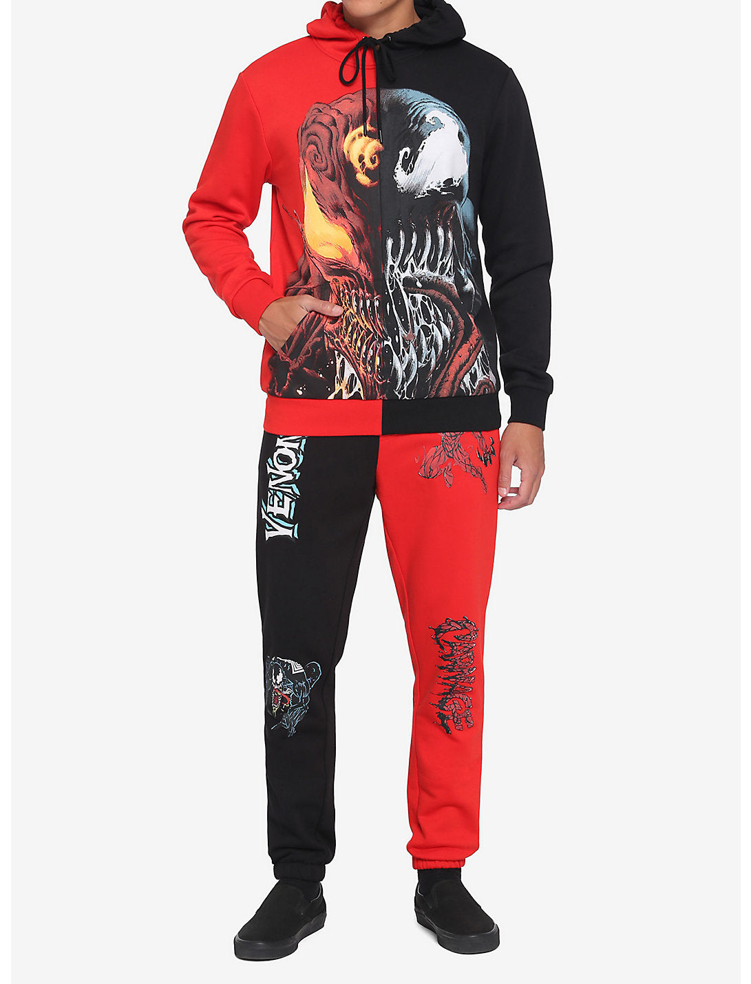 Los supervillanos se enfrentan en esta sudadera de Marvel con un diseño dividido en rojo y negro con caras de Venom y Carnage.