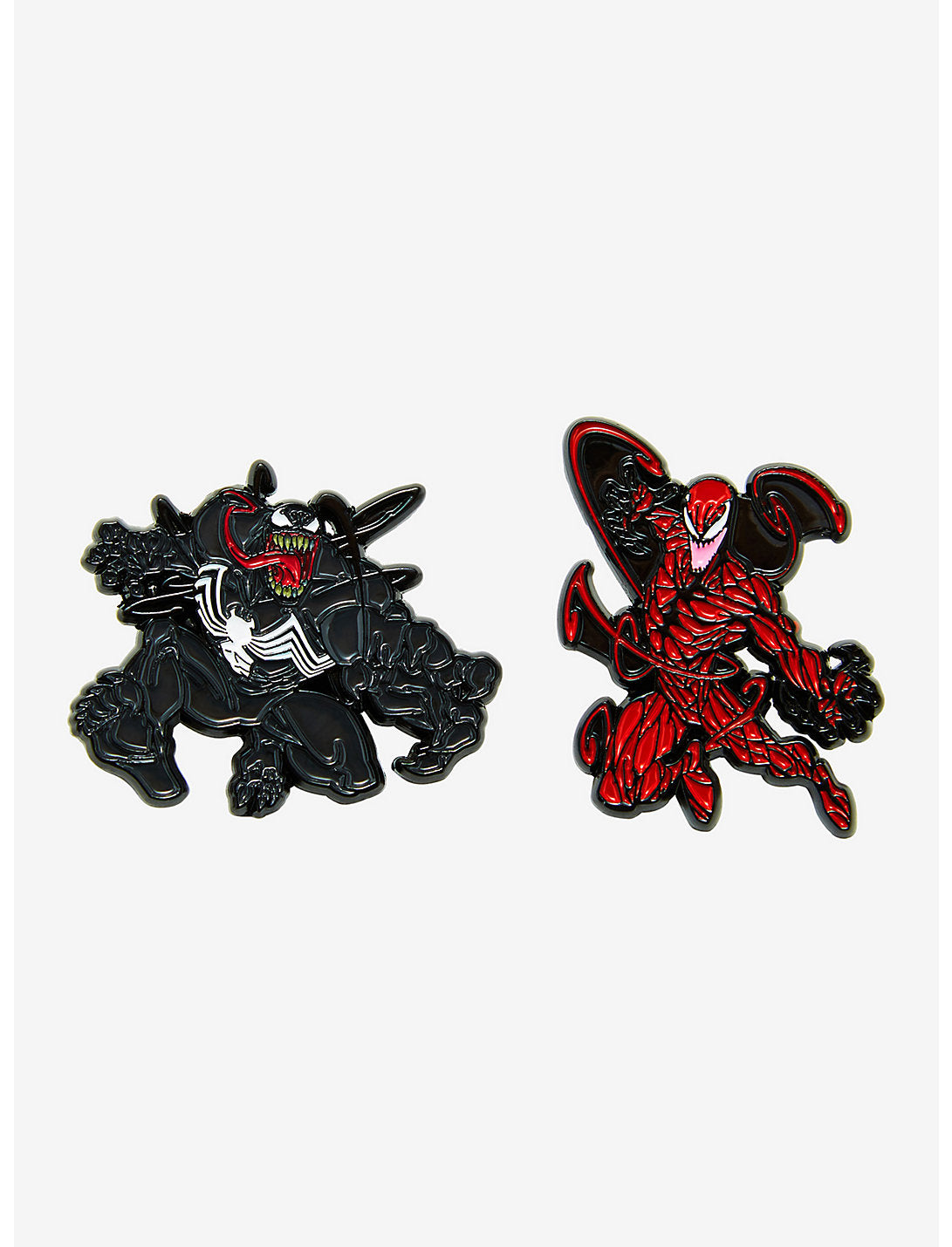 ¡Los dos rivales simbióticos, Venom y Carnage, pueden causar estragos en tu colección de alfileres de esmalte como estos feroces alfileres! Los villanos de Marvel están representados con un detalle asombroso, esperando que aparezca tu pin de Spider-Man.