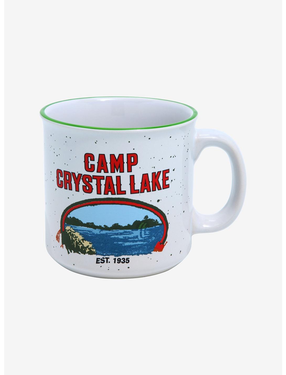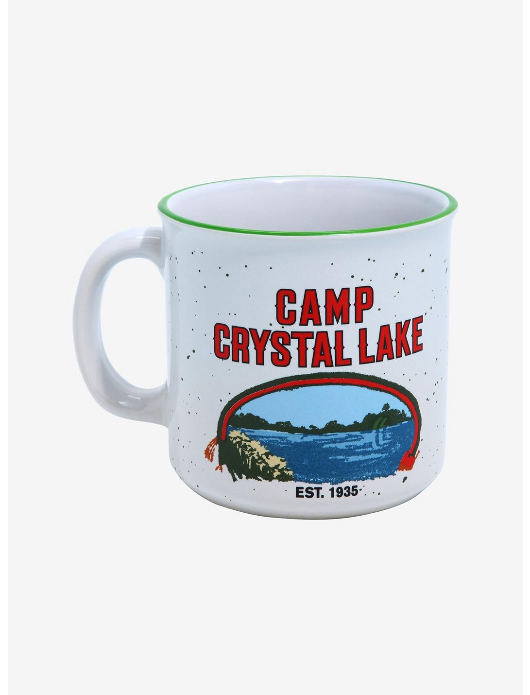¡No olvides empacar este esencial para acampar! Mantente hidratado durante tu viaje a Camp Crystal Lake con esta taza para campista. Presenta el icónico letrero del campamento en ambos lados y un borde verde.
