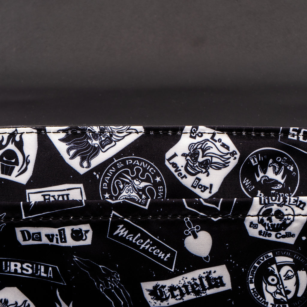 ¡El secreto está fuera de la bolsa! Algunos de los villanos más infames de Disney han creado un club, y tienes pruebas, en forma de Polaroid™. Con esta bandolera Loungefly Villains Club, puede mantener sus pertenencias seguras, mientras exhibe ingeniosamente un collage Polaroid™ de los villanos de Disney en acción.