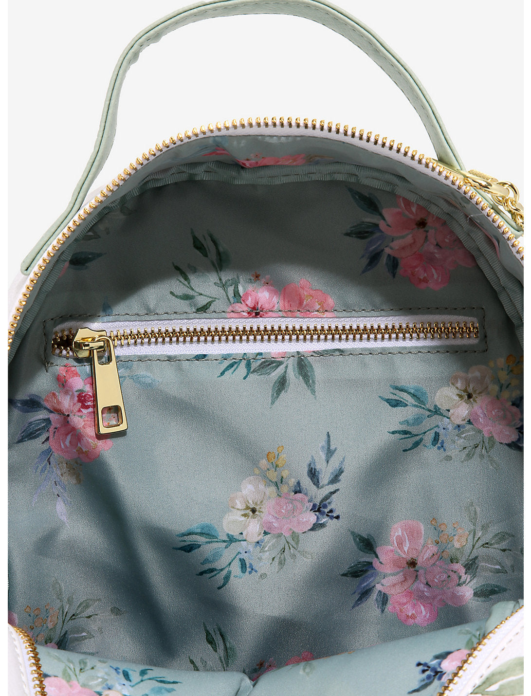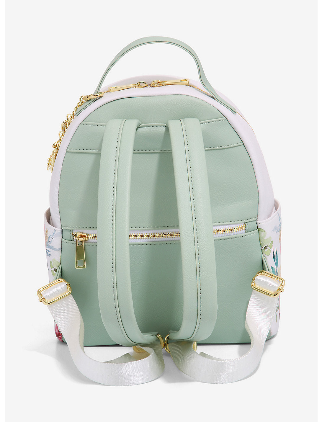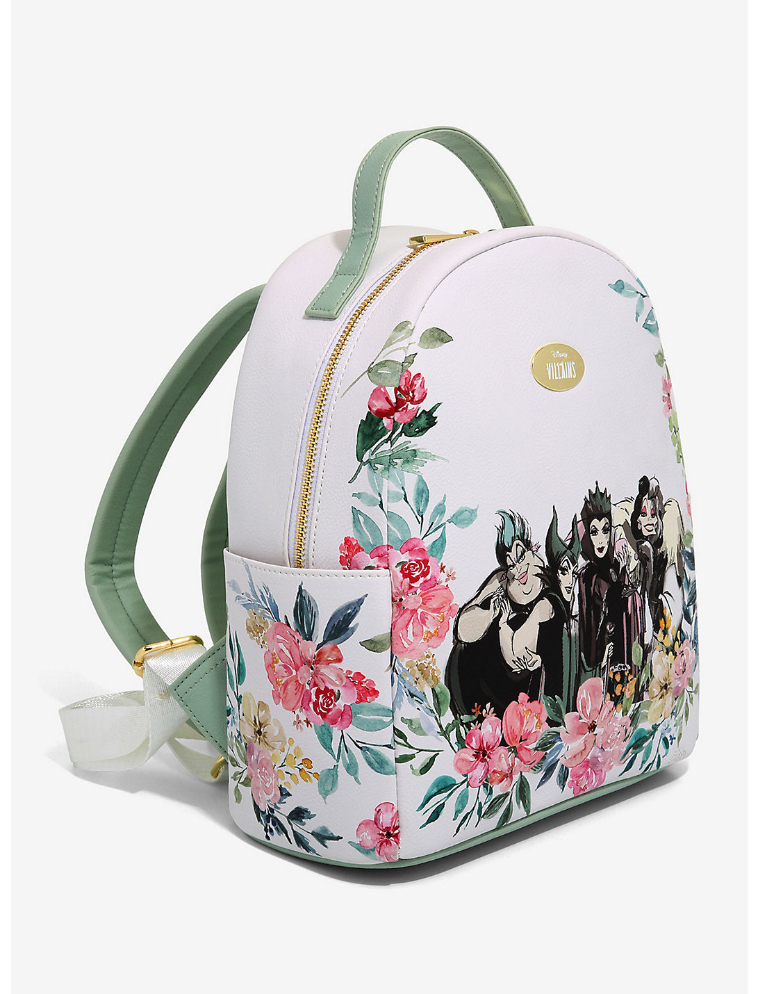 ¡Los villanos de Disney lucen tan afilados como espinas en esta mini mochila floral! Úrsula, Maléfica, la Reina Malvada y Cruella De Vil posan en este accesorio de piel sintética, rodeada de encantadoras flores de acuarela. Los detalles extravagantes adicionales incluyen un forro interior a juego con un patrón de flores de acuarela y un bolsillo con cremallera, bolsillos laterales, correas ajustables, un bolsillo exterior adicional con cremallera en la parte posterior y dijes en tono dorado con forma de íconos que representan a cada villano. ¡Combínalo con nuestro exclusivo tarjetero a juego (se vende por separado)!
