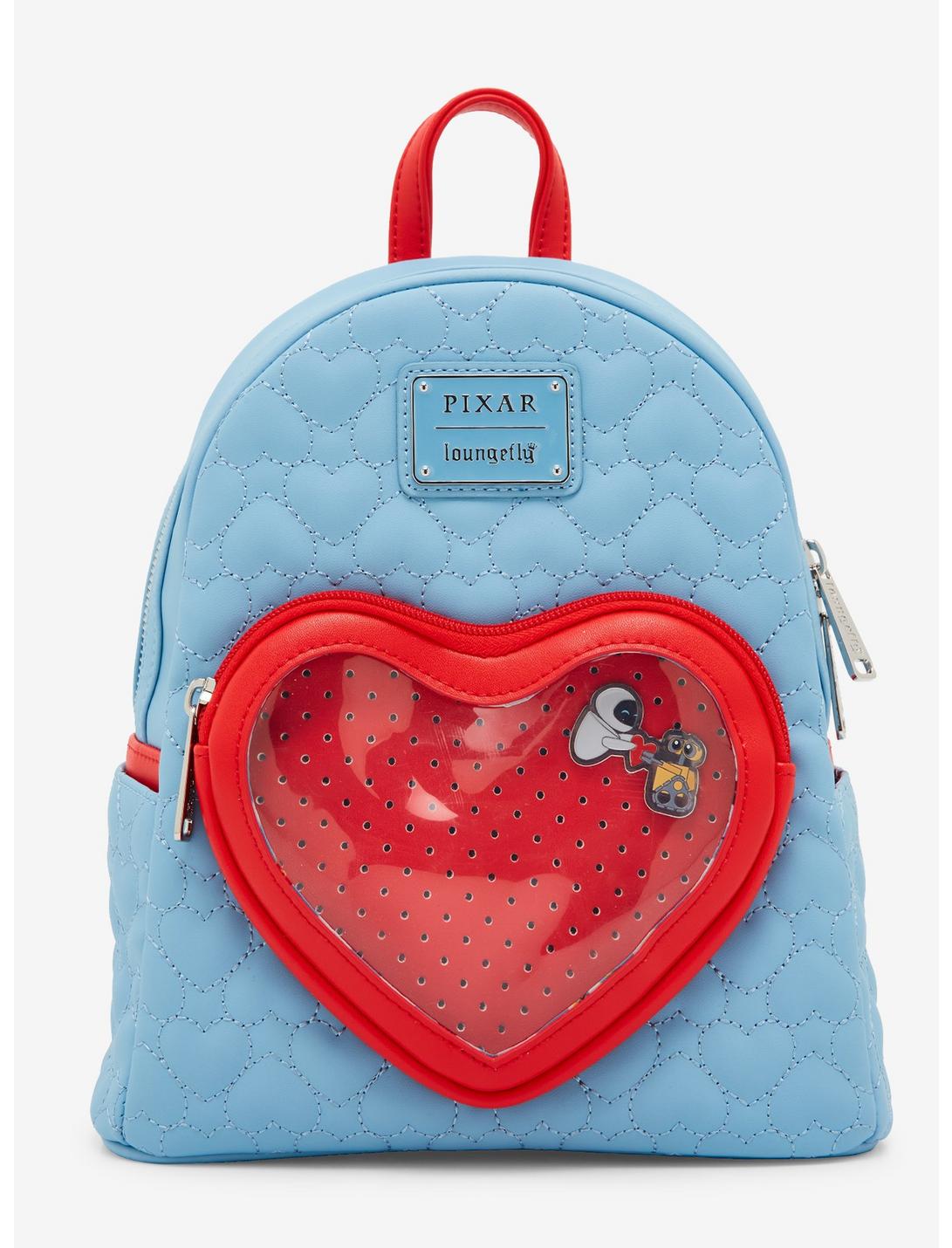 - ¡Presume de tu colección de pines con estilo robótico con esta minimochila inspirada en WALL•E! Este bolso Loungefly presenta un estampado de puntadas de corazón abullonadas por toda la prenda con un bolsillo delantero en forma de corazón. El bolsillo frontal incluye una ventana transparente y un panel de visualización para mostrar sus pines con el pin WALL•E y EVE incluido. Con bolsillos laterales y correas ajustables, esta mochila es perfecta para darle un toque de amor a tu colección de accesorios.