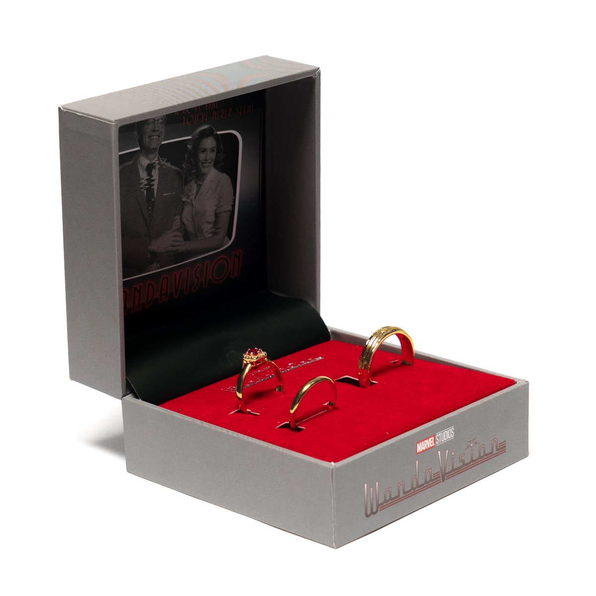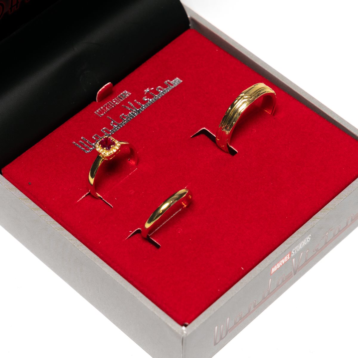 El conjunto de 3 piezas de réplica de accesorios de anillos de boda de WandaVision - está diseñado según los anillos que se ven en la serie de televisión.
