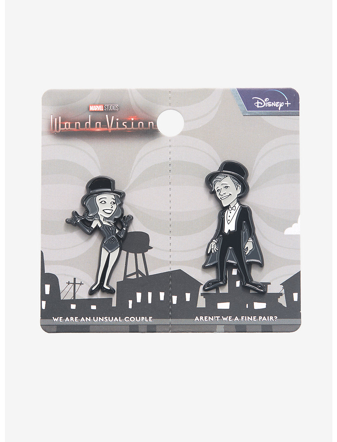 ¡Wanda y Vision de hecho hacen una buena pareja como estos pines de esmalte de Marvel! Las dos estrellas de WandaVision recibieron cambios de imagen de dibujos animados de mediados de siglo y aparecen con sus atuendos del concurso de talentos de la ciudad. Regálale uno a tu súper amor o colócalos en tu bolso, chaqueta o tablero de corcho.
