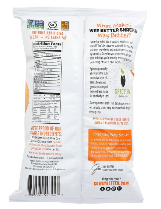 Way Better Snacks Sweet Potato Tortilla Chips - 66oz/Paquete de 12