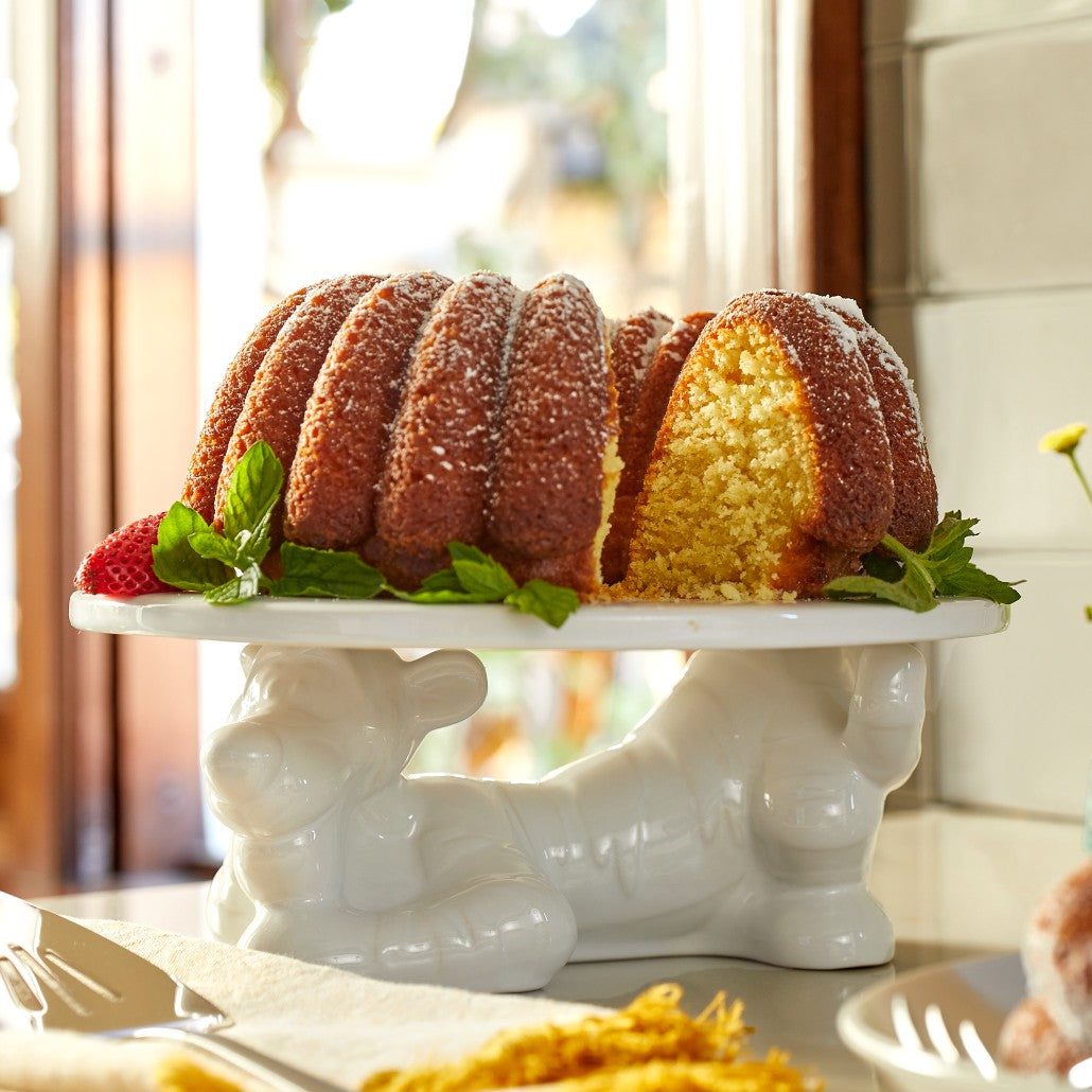 Lo maravilloso de Tiggers es que, cuando no están saltando, nada les gusta más que ayudar como un puesto de pasteles. El amigo normalmente bullicioso de Pooh adopta una pose relajada mientras descansa debajo de la base plana de este soporte de cerámica que cuestiona sus modales.