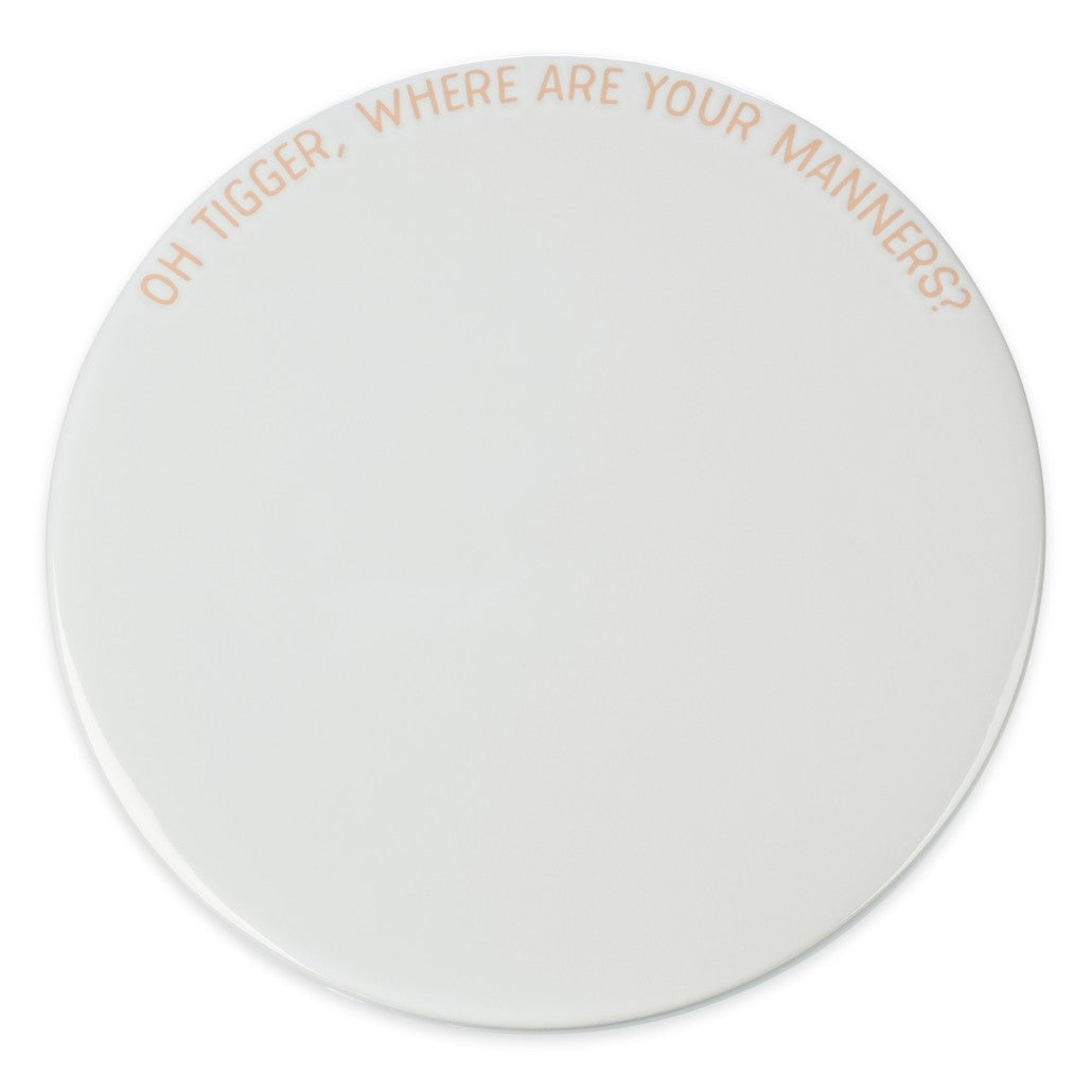 Rodeando la parte superior de la base está el mensaje, "Oh Tigger, ¿dónde están tus modales?"