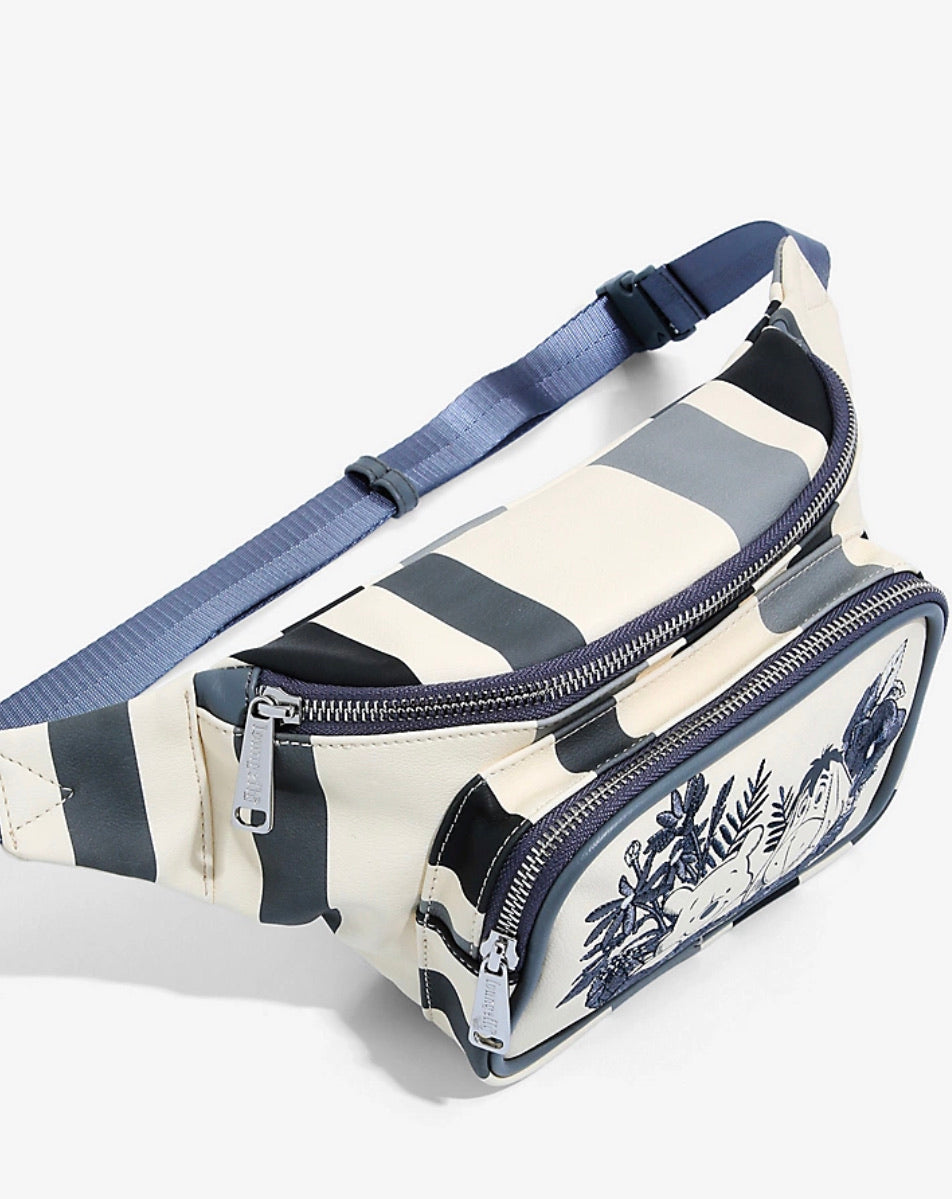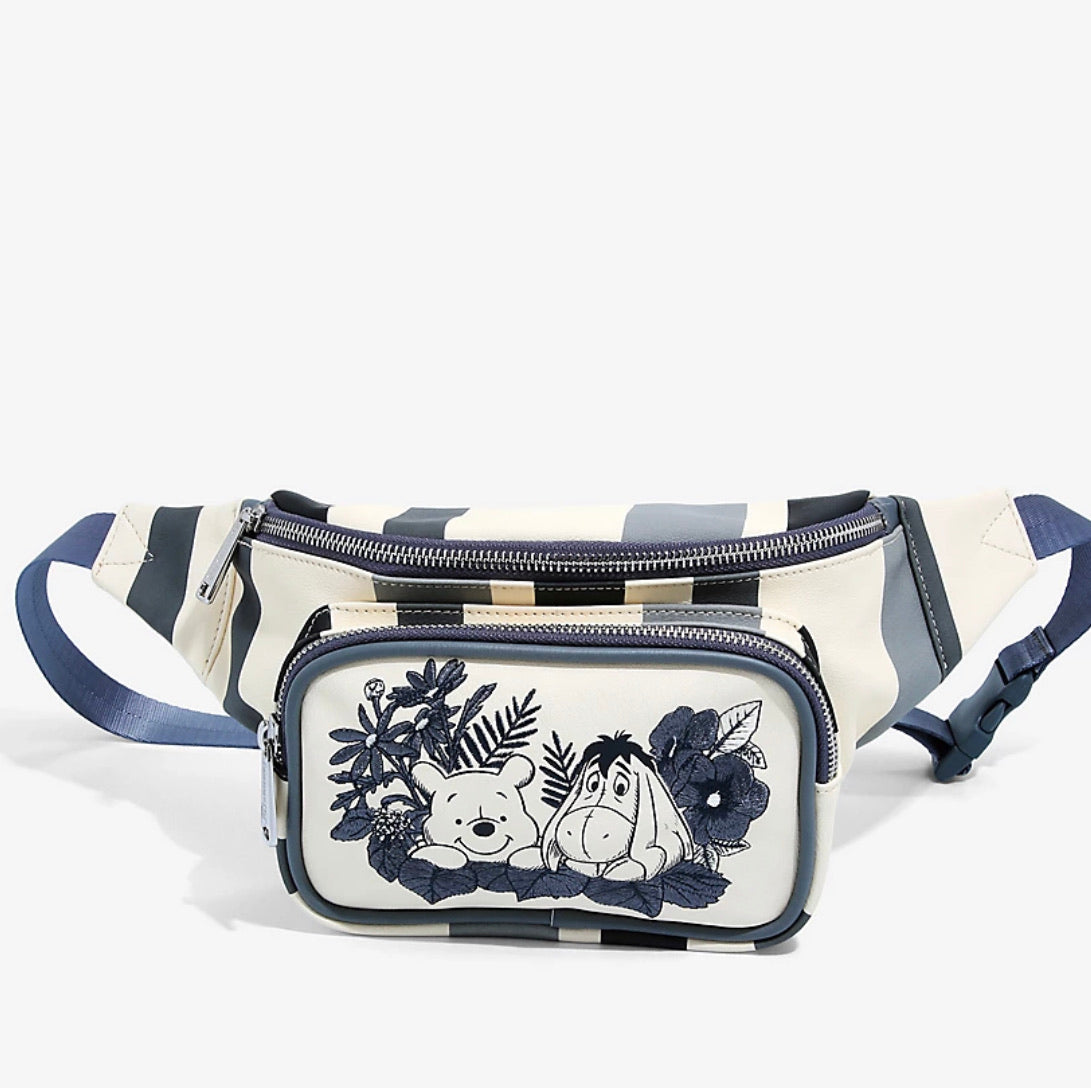 ¡Puedes rellenar esta riñonera con mucho más que pelusa! Rodeados de flores bordadas, Pooh y Eeyore están aquí para llevar tus básicos (¡y hacerte compañía!) En esta riñonera Loungefly de piel sintética a rayas. Cuenta con una correa de hebilla ajustable, una insignia de la marca esmaltada y un forro interior con un patrón floral frondoso protagonizado por el resto de la tripulación de Hundred Acre Wood.