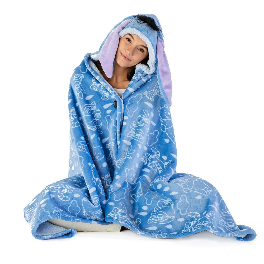 Cuando te sientas un poco triste, esta acogedora manta de forro polar con capucha seguramente te animará. Rematado con orejas de burro y con una cola con un lazo rosa, es tan dulce y cómodo que incluso Eeyore sonreiría al usarlo.