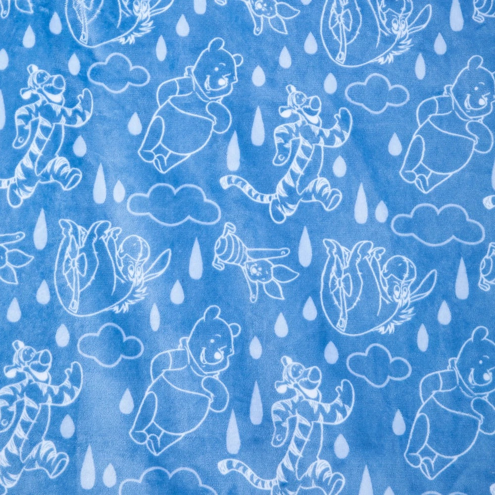 El patrón de todo el exterior presenta a Eeyore, Winnie the Pooh, Piglet, Tigger, nubes y gotas de lluvia