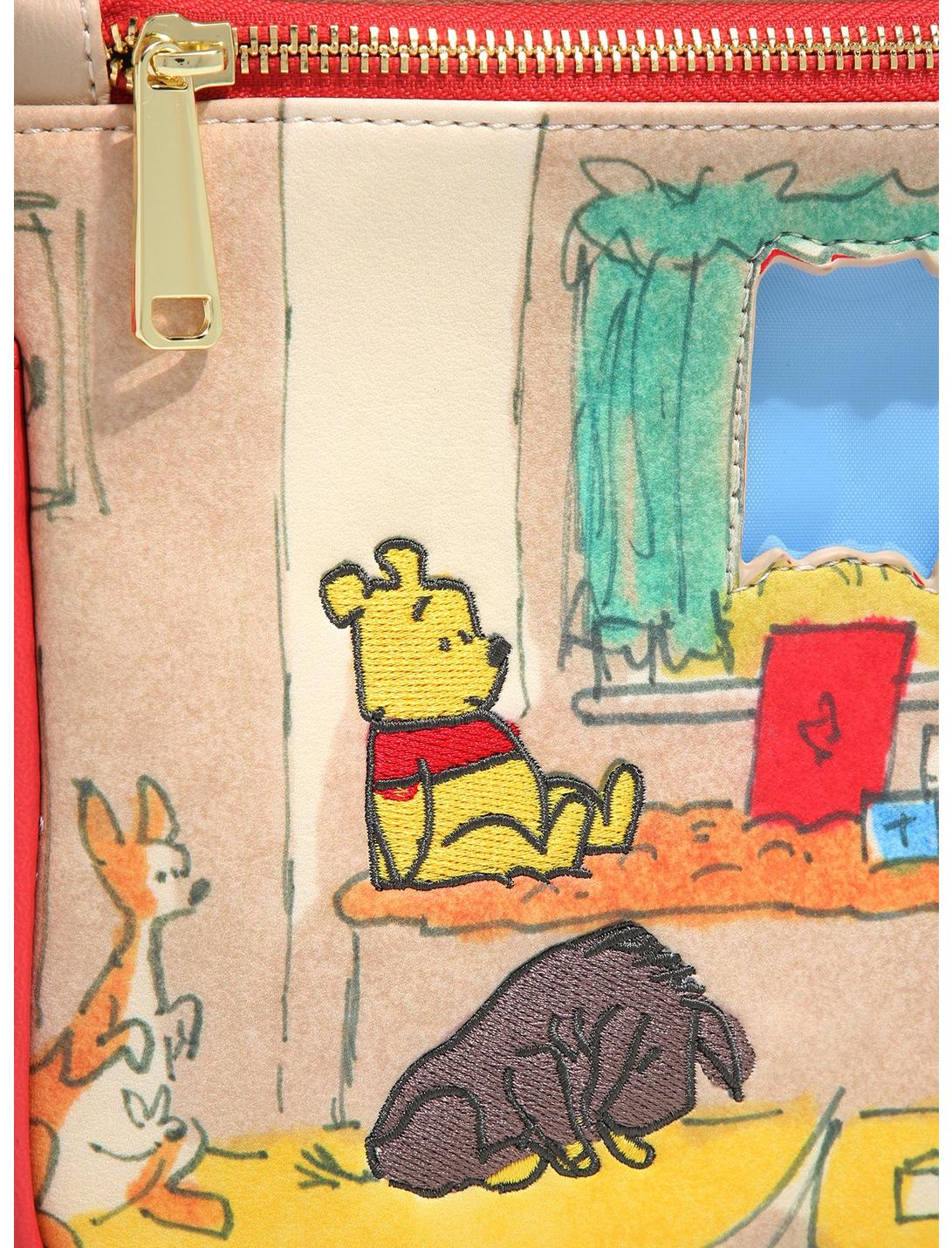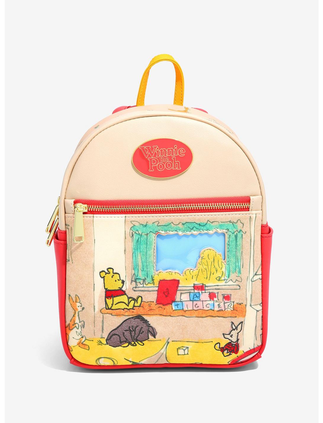 ¡Empaca tu juguete de peluche favorito, algunos bocadillos de miel y el resto de tus necesidades diarias en esta minimochila de Winnie the Pooh y emprende una aventura en el Bosque de los Cien Acres y más allá! Con un diseño bordado de Pooh, Piglet, Eeyore, Kanga y Roo pasando el rato en un boceto de la habitación de Christopher Robin, la ventana recortada en el bolsillo frontal le permite mostrar cualquiera de sus pines esmaltados favoritos. También cuenta con una insignia esmaltada de la marca, herrajes dorados, gráficos del elenco de Disney en el lienzo superior y correas ajustables para los hombros.