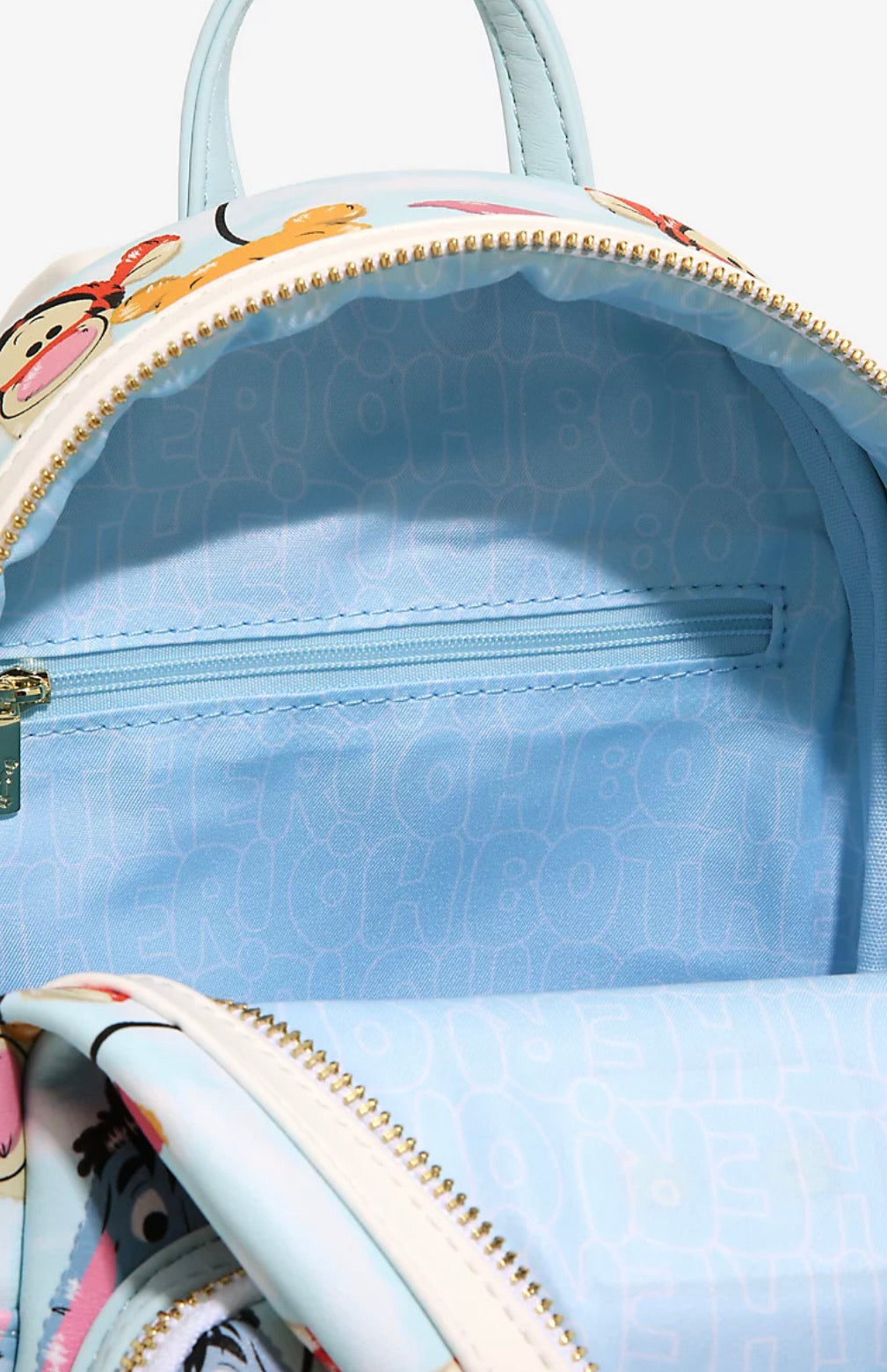 ¿Olvidas tus básicos? ¡Woopsie daisy, Winnie the Pooh se asegurará de que eso nunca vuelva a suceder! Este bolso bandolera de piel sintética de Loungefly presenta un diseño azul celeste con Pooh, Piglet y Eeyore rodeados de margaritas y abejas. Las características adicionales incluyen herrajes en tono dorado, un dije de cremallera en forma de abeja, correa removible y ajustable, insignia de la marca esmaltada y forro interior con un patrón de texto de burbuja "Oh Bother" y bolsillo con cremallera.