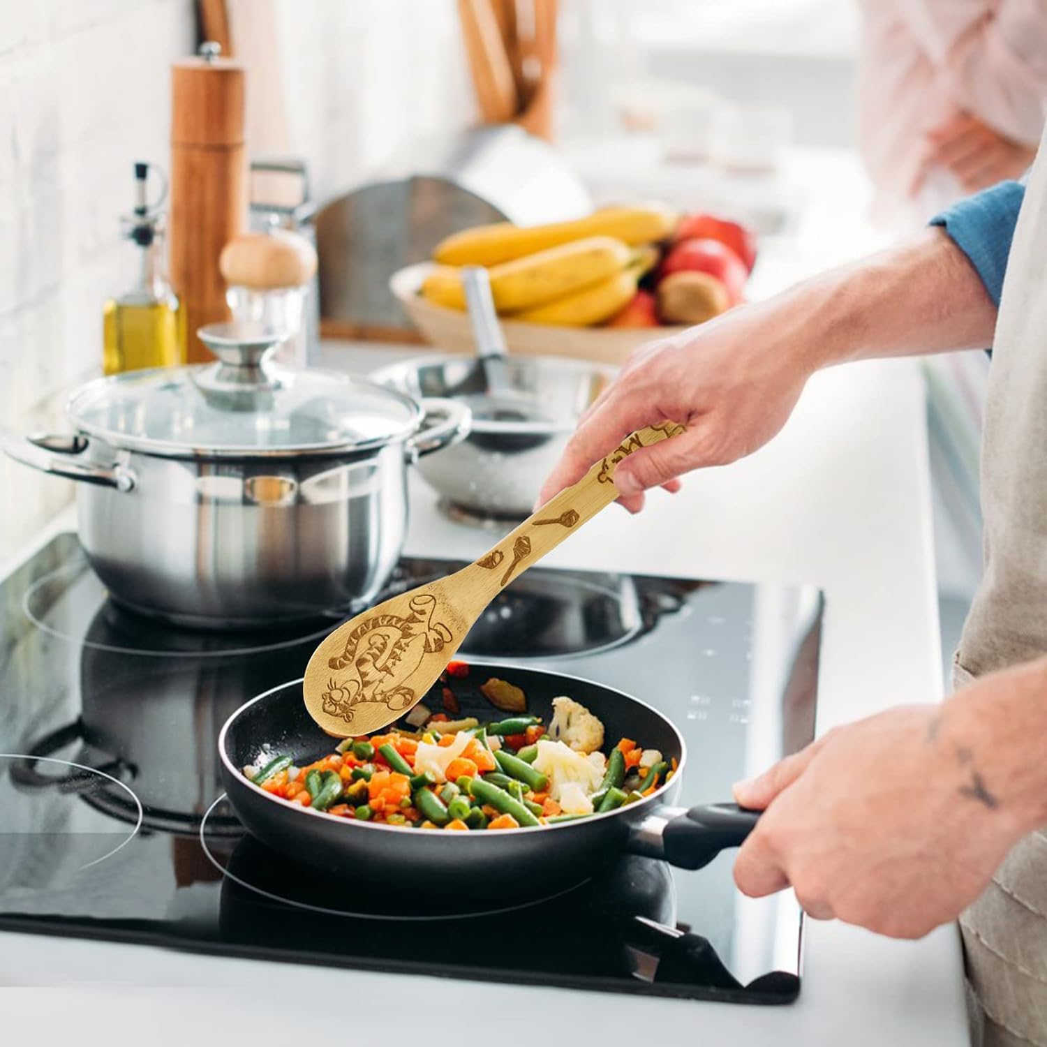 - Juego de cucharas de madera grabada: es un juego de utensilios de cocina de muy alta gama que incluye un juego de cucharas de madera para cocinar, un guante de horno de 6.7 x 10.6 pulgadas, agarradera de 7 x 7 pulgadas y delantal de 26.7 x 30.7 pulgadas. Nuestros utensilios de cocina de madera tienen todo lo que necesitas para una experiencia de cocina divertida
