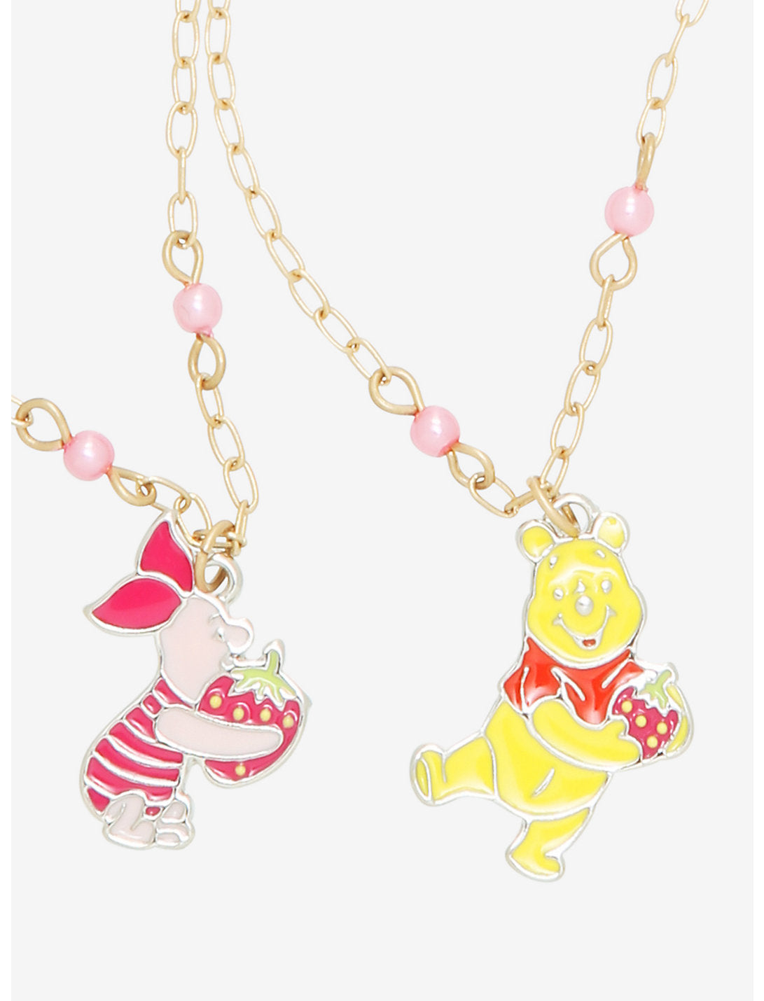 ¡Piglet y Pooh Bear son los mejores amigos en todo el bosque de los cien acres! Si tú y tu mejor amiga sois lo mismo, ¡tienes que conseguir estos collares de mejores amigas, con Pooh y Piglet sosteniendo deliciosas fresas!