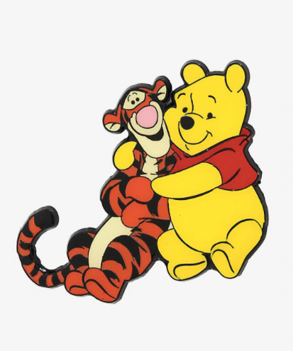 Celebra el regalo de la amistad con este alfiler de esmalte. Nuestro viejo oso tonto favorito, Pooh, le está dando a Tigger un gran abrazo de oso.