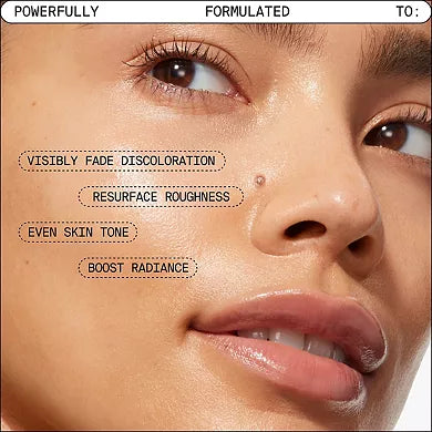 Un exfoliante líquido sin enjuague que actúa durante la noche para suavizar la textura de la piel, unificar el tono, mejorar la resequedad y atenuar visiblemente las manchas oscuras.