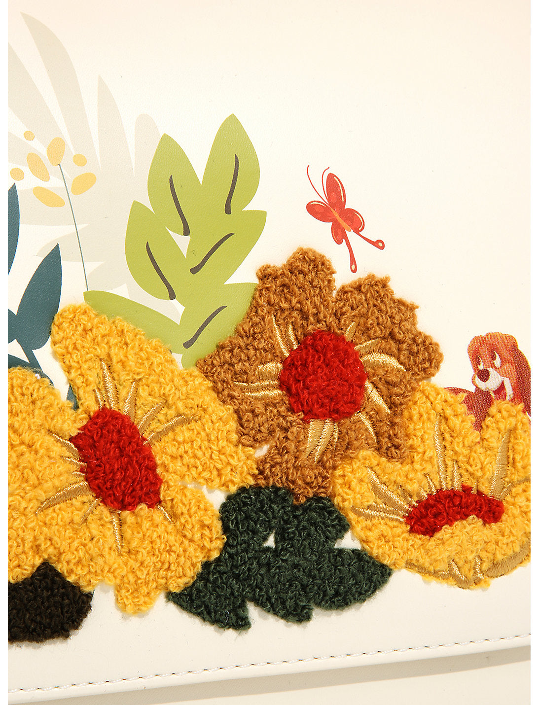 ¡Copper y Tod están aquí para traer un poco de diversión floral a tus atuendos! El adorable par de Disney de The Fox and the Hound se presenta en el frente de este bolso Loungefly, jugando entre las aplicaciones de flores peludas y otra flora del bosque. También cuenta con una correa de hombro ajustable, una correa de transporte, una insignia de la marca esmaltada y un forro interior con estampado integral.